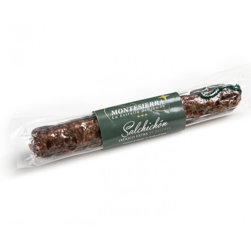 Procedencia: De las mejores carnes del cerdo ibérico, seleccionadas para crear un producto natural y tradicional. Maduración: Nuestro salchichón extra tiene una maduración de 2 meses. Características: Sabor inigualabe gracias a las especies naturales como la pimienta y el comino, que hacen al salchichón ibérico un producto sin par. Presentación: La pieza de salchichón viene embasada al vacio y estuche de cartón. Peso aprox.: 0,45 ( +-0.30 gr) |
