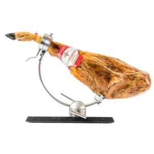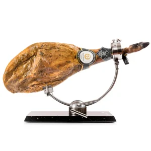 Jamón de cebo ibérico 50% raza ibérica elaborado a partir de cerdos ibéricos engordados con piensos naturales. Curado durante un mínimo de 24 meses en bodegas y secaderos de Jabugo, presenta pezuña negra y grasa exterior dorada y brillante de consistencia blanda; al corte muestra tonalidades rojas, rosas y ocres con infiltraciones de grasa veteada blanca rosácea. Sabor suave y delicado, con aromas exquisitos y únicos.